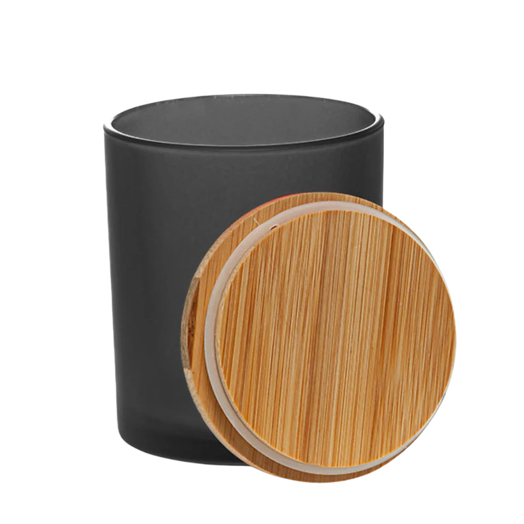 Matt fekete gyertyatégely bambusz fedővel - 300 ml